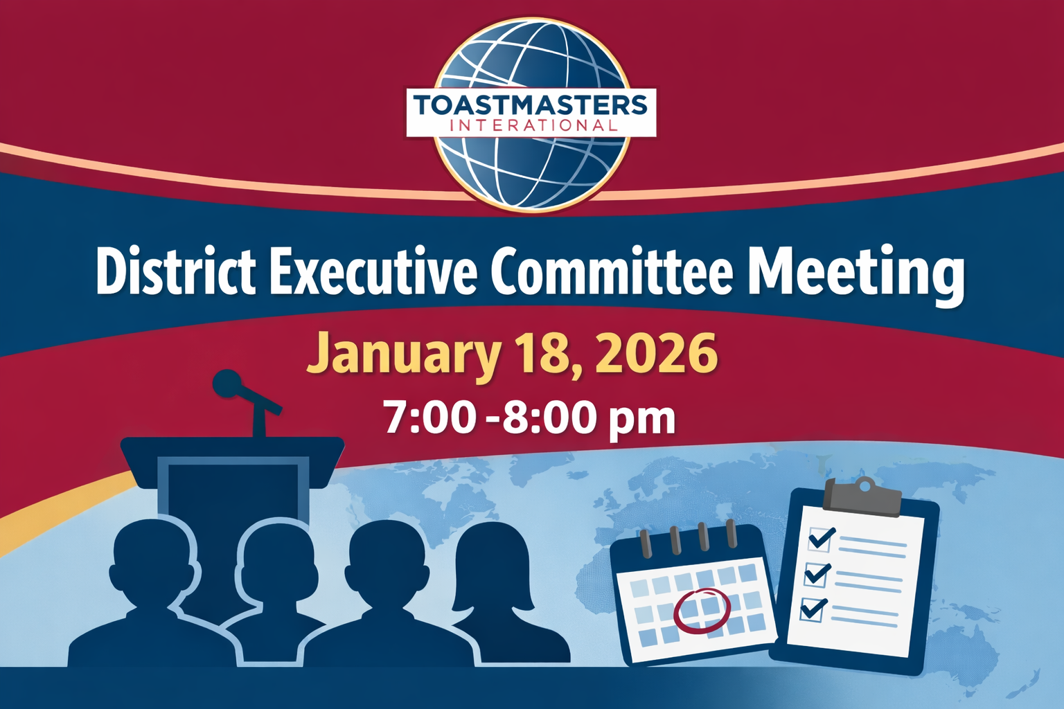 Toastmasters District Executive Committee (DEC) meetings are open only to 2025-26 appointed and elected District officers. The voting members of the DEC are: